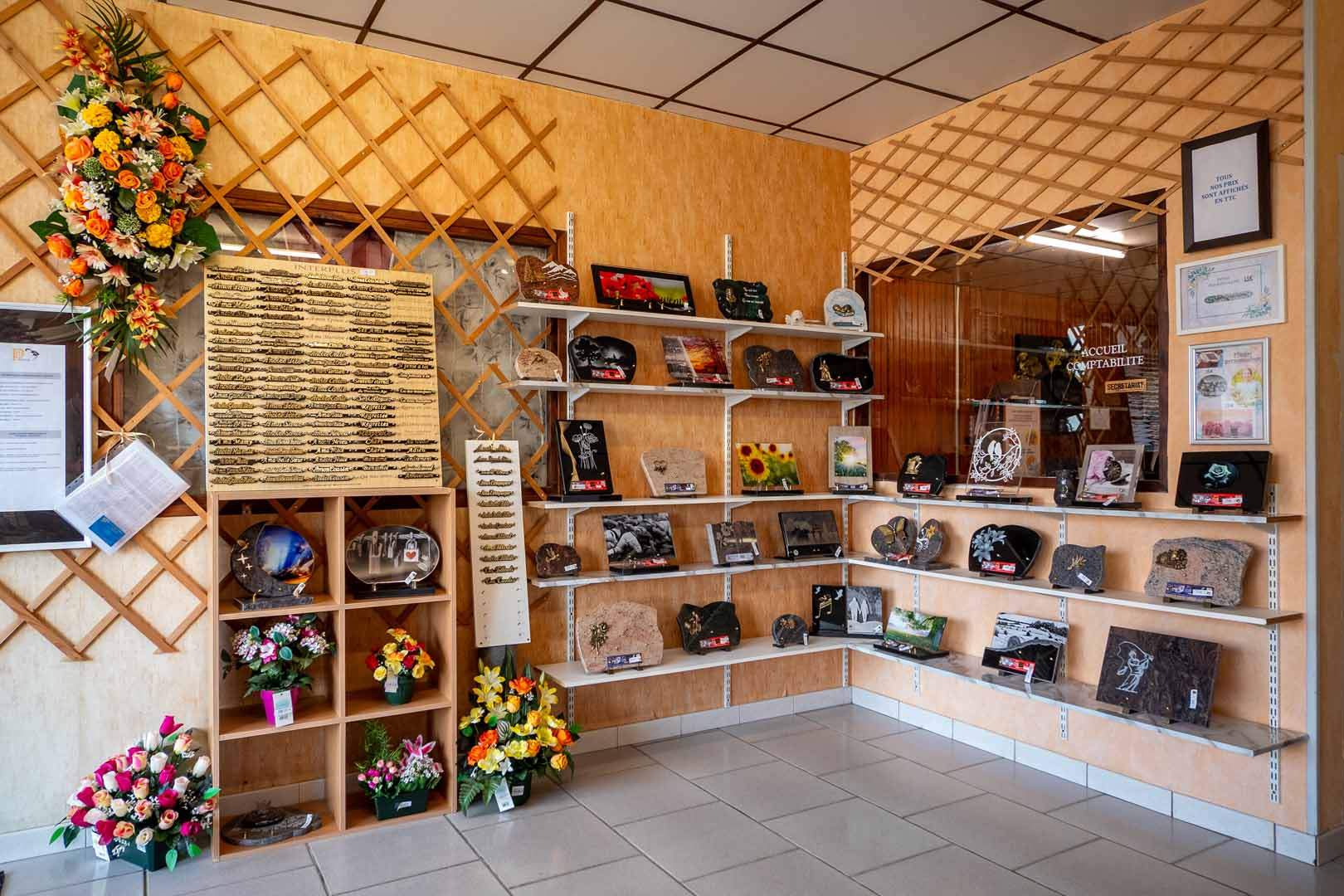 Nous proposons également des prestations de marbrerie funéraire : création de monuments, gravures, caveaux ou encore entretien de sépulture. Nous mettons aussi à votre disposition un large choix d’articles funéraires, dont des plaques personnalisées pour rendre hommage à vos proches de manière durable. En sollicitant nos services, vous choisissez un service de proximité, à l’écoute, et profondément engagé à vos côtés.